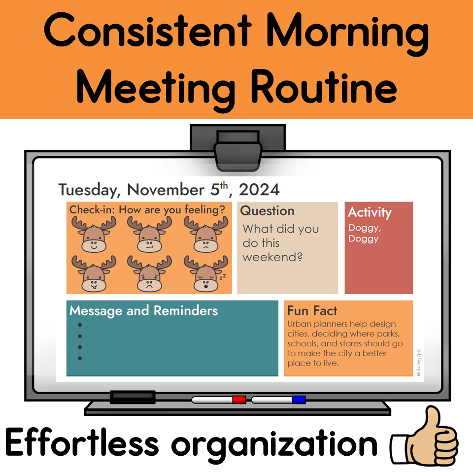 Need structure and consistency? These morning meeting slides are perfect to stay prepped and ready for your daily morning meeting. Each day includes a unique activity, emotion check-in, question, and fun fact!